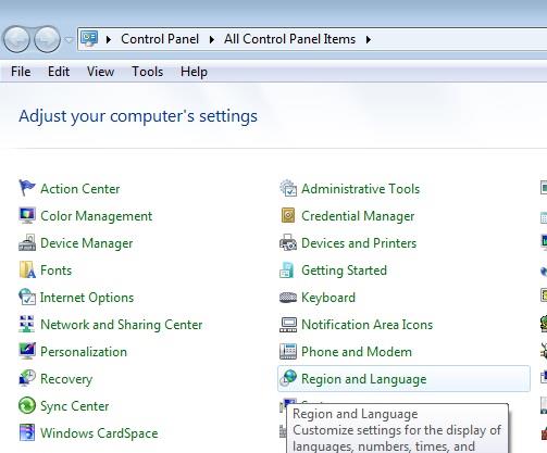 1 - بـہ Control Pane بـرويـد و گـزيـنـہ Region and Language را کـلـيـک کـنـيـد